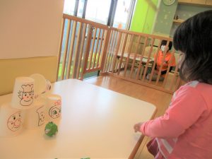 室内では、保育士の手作りおもちゃを楽しみました