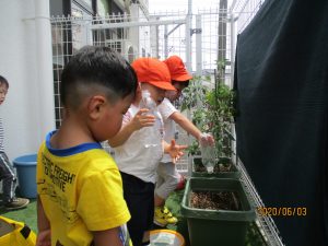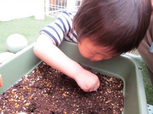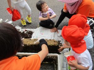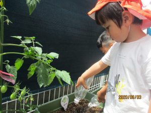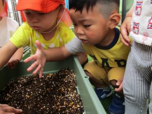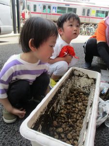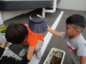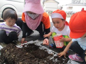 2歳児さんは園庭の野菜や、花の植え替えのお手伝いもしてくれました![]()