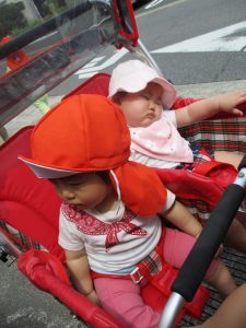0歳児さんは散歩車の揺れが心地よかったようで、とっても気持ちよさそうにぐっすりでしたよ![]()