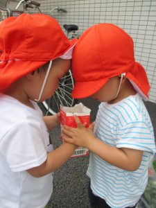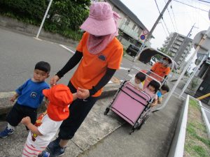 日に日に暑くなってきて、梅雨特有の蒸し暑さもありますが、お散歩に行くことを楽しみにしている子どもたち![]()