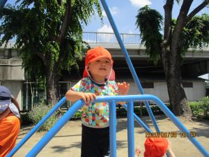 公園でも、りんご組さんと一緒に固定遊具にも挑戦して楽しんでいます![]()