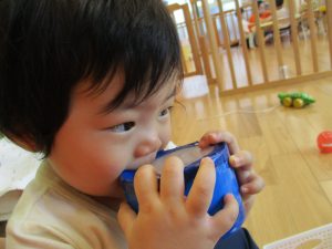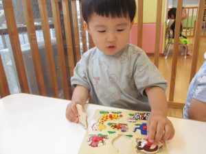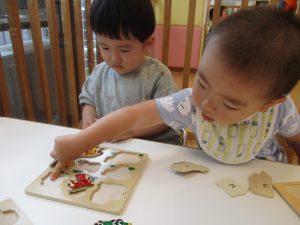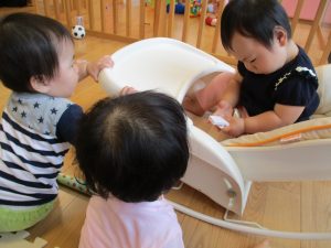 色々な事に興味津々で、りんご組さんの真似をしたり、好きな遊びに熱中して遊んだりしているいちご組さん?