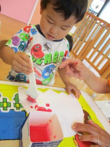 制作も、保育士の話をよく理解して色をつけていました![]()