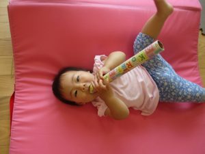 気になるおもちゃを手にとっては、感触を確かめながら遊んでいます![]()