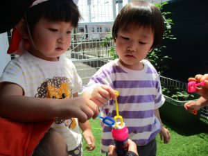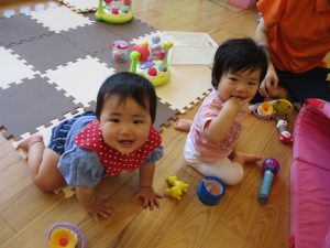 そんなお兄さん、お姉さんの様子を見ながら0歳児さんもニコニコ