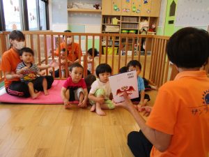集中してお話を聞いたり、キレイな挿絵に反応したりして絵本を楽しんでいましたよ