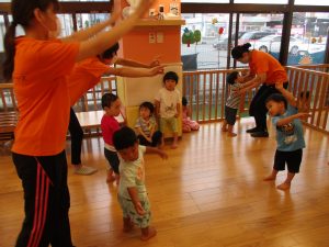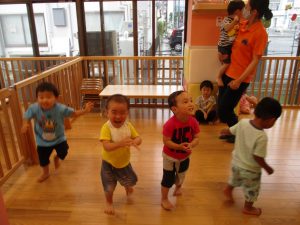雨の日も、みんなの大好きな曲をかけて思い切り体を動かして楽しみました