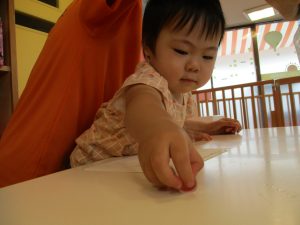 あおむし大好きで前のめりで見入る子も![]()