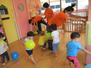 風船やシャボン玉で遊びましたよ![]()