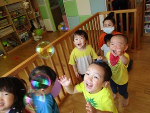 シャボン玉に手がとどくかな~![]()