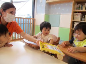サンライズキッズ今伊勢園では0~2歳児の子どもたちに読み聞かせを行っていますが、絵本を選ぶときに考えるのは【子どもの発達・興味・関心】です