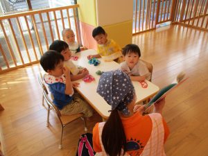 園では給食やおやつの前など、活動からの切り替えの時間に絵本を読んでいます