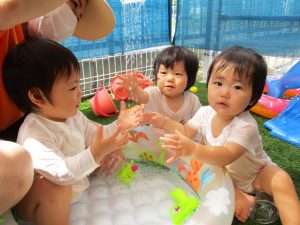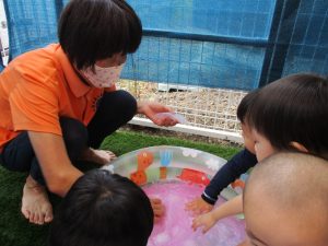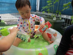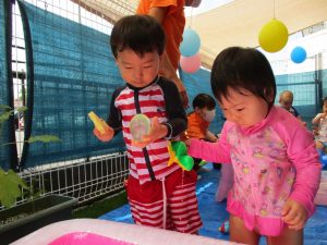 いつもの水遊びよりたくさんのおもちゃがあって、みんなウキウキで楽しんでいましたよ