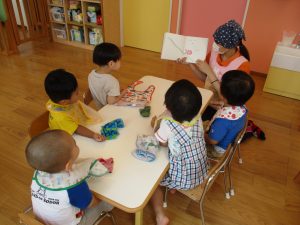 食事の前は食事にちなんだ絵本を読んでみんなで『いただきます』