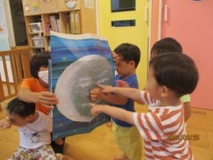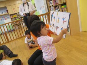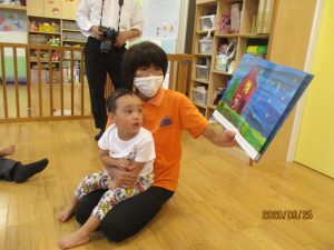また、保育者が読む絵本も楽しんでいます![]()