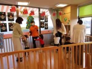 1歳児さんは、いつも保育園で頑張っていることを一生懸命保護者の方に伝えようとしている姿が、とってもかわいかったです![]()