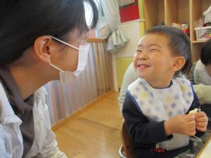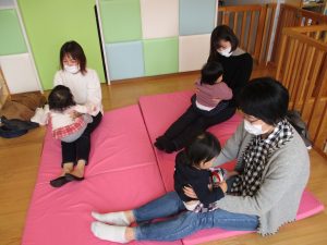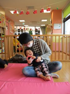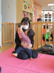 お母さんと一緒に嬉しそうに過ごす0歳児さん、おうちで甘えている様子を垣間見ることができ、とってもかわいかったです![]()