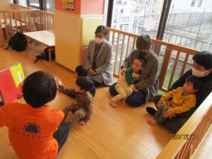 本日は保護者の方にも一緒に絵本の読み聞かせに参加していただきました?