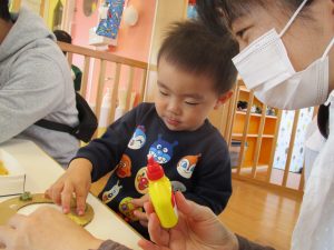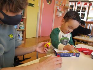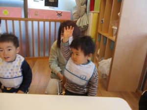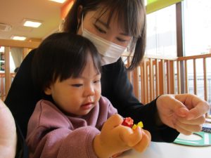0,1歳児さんの保護者の方が来ていても、動じることなく過ごしていたりんご組さん![]()