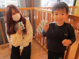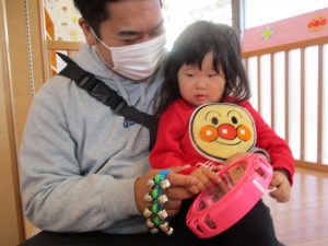 楽器を使ったリズム遊び、親子のふれあい遊びも一緒に楽しみました![]()
