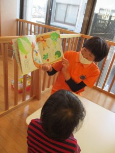 そんな野菜嫌いの子どもたちに、食育というねらいも込めて、今回は『ふゆやさいのふゆやすみ』という絵本を読んでみました![]()