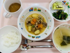 ※肉じゃがは、定番のおかずでご飯も進み、よく食べていました!ほうれん草は、今が旬です。甘さと栄養価も増すのでおすすめの食材です。