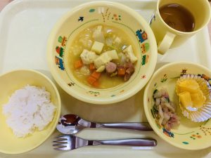 ※寒い日には、体が温まる煮込みスープがぴったりです♪今日も、みんなたくさん食べてくれました。