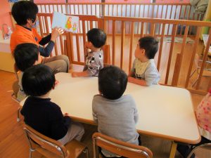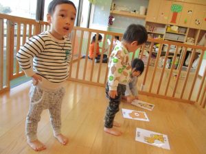 保育士が出題するヒントをもとに、競ってカードをとりに行っていましたよ
