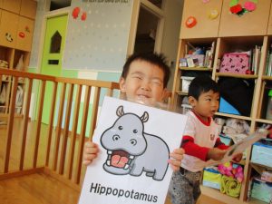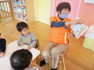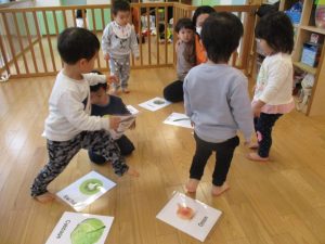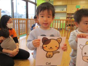 動物や野菜の大きな絵カードを使って、カルタを楽しみました