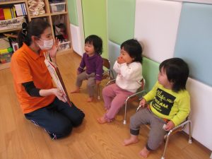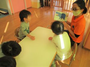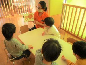 英語では、英語のCDを聴きイメージを膨らませたり正しい発音を耳から聴いて覚えたり絵本やカード取りなど楽しんでいます。