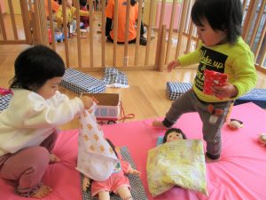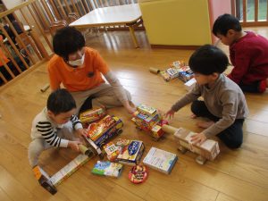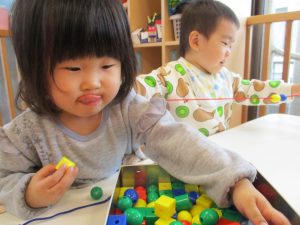 ままごとや、積み木、ひも通しに空き箱を使った工作など、楽しいこと盛りだくさんの1週間でしたよ