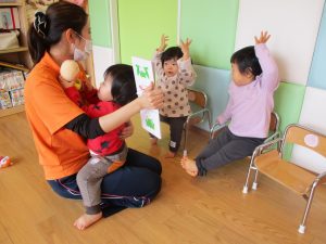 0歳児さんが「ぴょーん」という絵本を読んでいました![]()