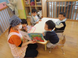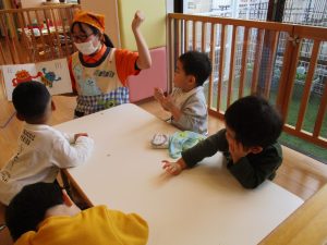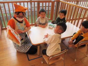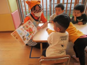 子どもたちにとっておには怖いイメージですが、絵本に出てくるおにはとてもかわいらしく、子どもたちも怖がることなく嬉しそうに見ていましたよ![]()