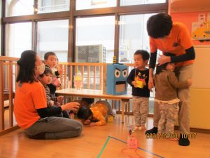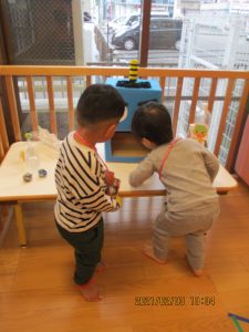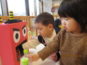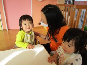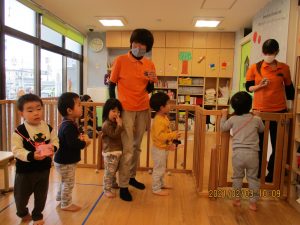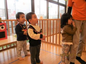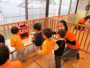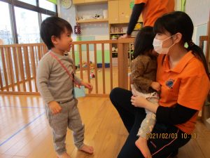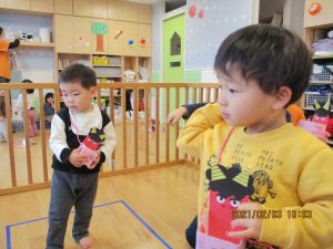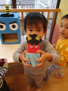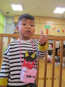 トイレ(?)に行っていた保育士が戻ってくると、みんなで『おに来たよ!』と報告していましたよ