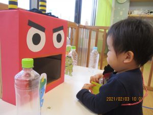 豆まき・・のはずが、気づくと鬼に豆を食べさせてあげていました