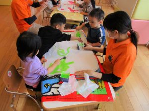 色が広がっていく感触を気持ちよさそうに楽しんでいた子どもたちです![]()