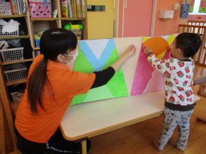 ”と2歳児さんが最後の仕上げをしてくれましたよ![]()