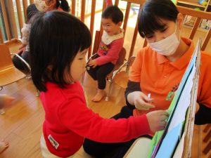 みんなでひなまつりの紙芝居や絵本を見て、ひなまつりの歌を歌い、ひなまつりの由来についてお話を聞きました![]()