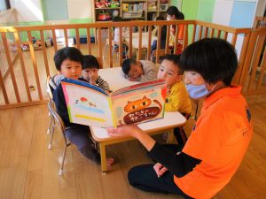 サンライズキッズ保育園では、たくさんの絵本を子どもたちに読み聞かせ、想像力や心の豊かなお子様に育ってほしいと願っています![]()