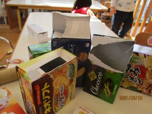 中身が何もないことを確認すると少し残念そうな子どもたちでしたが、気持ちを切り替え制作を楽しんでいましたよ