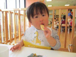 初めてのおやつ、おいしくいただきましたよ![]()