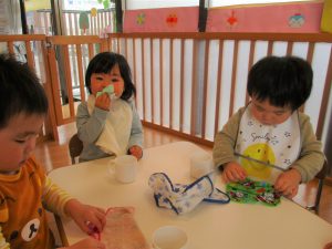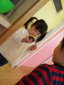 しかし、進級児さんの中には「りんごくみになる!」と進級することに期待を膨らませる子もおり、新年度の新しいスタートにワクワクしている様子です![]()