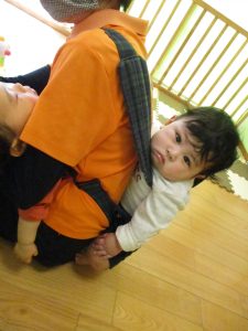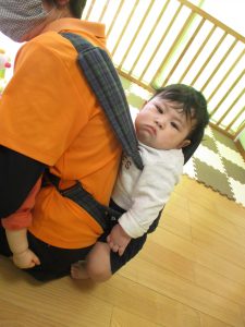 保育士の抱っこで落ち着いてスヤスヤ、、、![]()