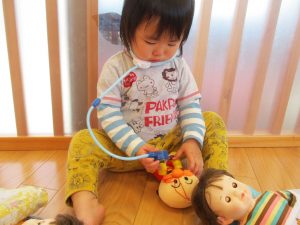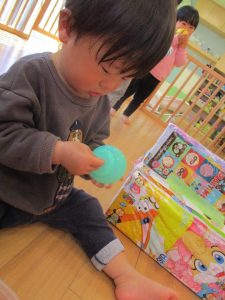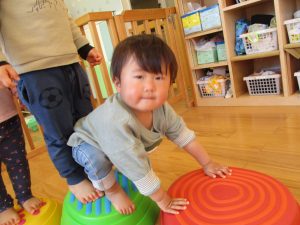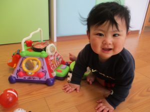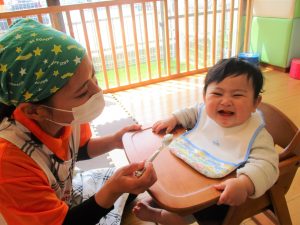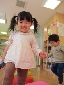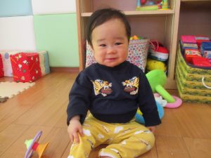 つかまり立ちを見せてくれたり、保育士と目が合うとニコッと笑いかけてくれたり日中とても機嫌よく過ごせるようになってきました![]()
