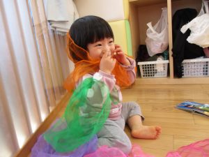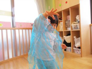 こちらはリトミックスカーフを使って遊びましたよ![]()