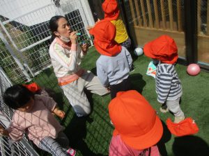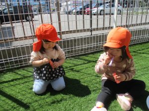 春の陽気で、園庭で過ごすのも気持ちいいね![]()