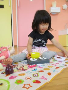 ままごと遊びではお店屋さんやママになりきる子どもたち