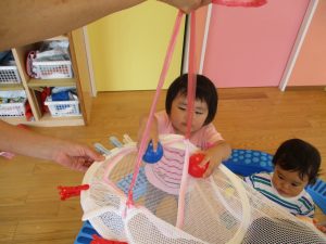 上手な年上児さんの姿を見て、年下児さんも真似をしていましたよ