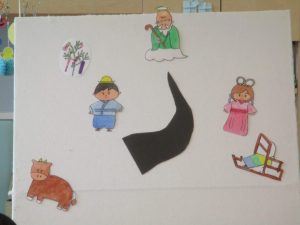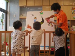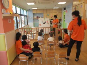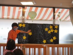 保育士がパネルシアターや絵本を使って簡単に由来を伝えました