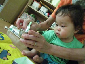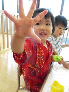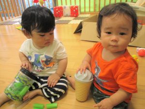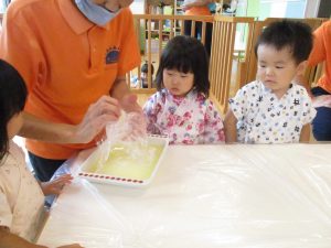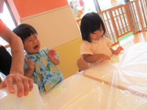 「つめたーい」といってゼリーを頬にあてて感触を楽しむ子もいましたよ